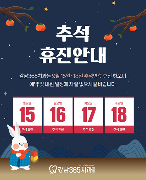 공지사항 강남365치과 추석 연휴 진료 안내 페이지 정보 작성자 강남365수서점 작성일24-09-06 10:43 조회448회 댓글0건 관련링크 이전글 다음글 목록 본문 이전글 다음글 목록